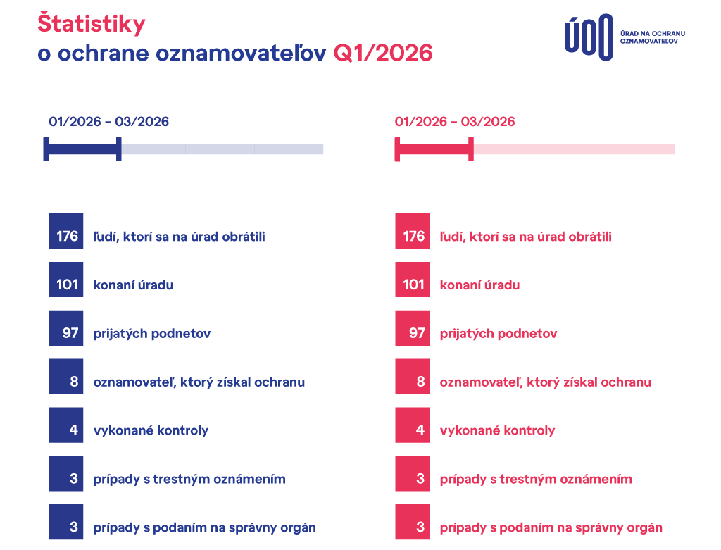 Napriek snahám o zrušenie Úradu na ochranu oznamovateľov (ÚOO) zaznamenal úrad v prvom štvrťroku 2026 historicky najvyšší počet ľudí, ktorí sa na neho obrátili. Spolu išlo o 176 osôb, pričom mimoriadne silný bol najmä marec.