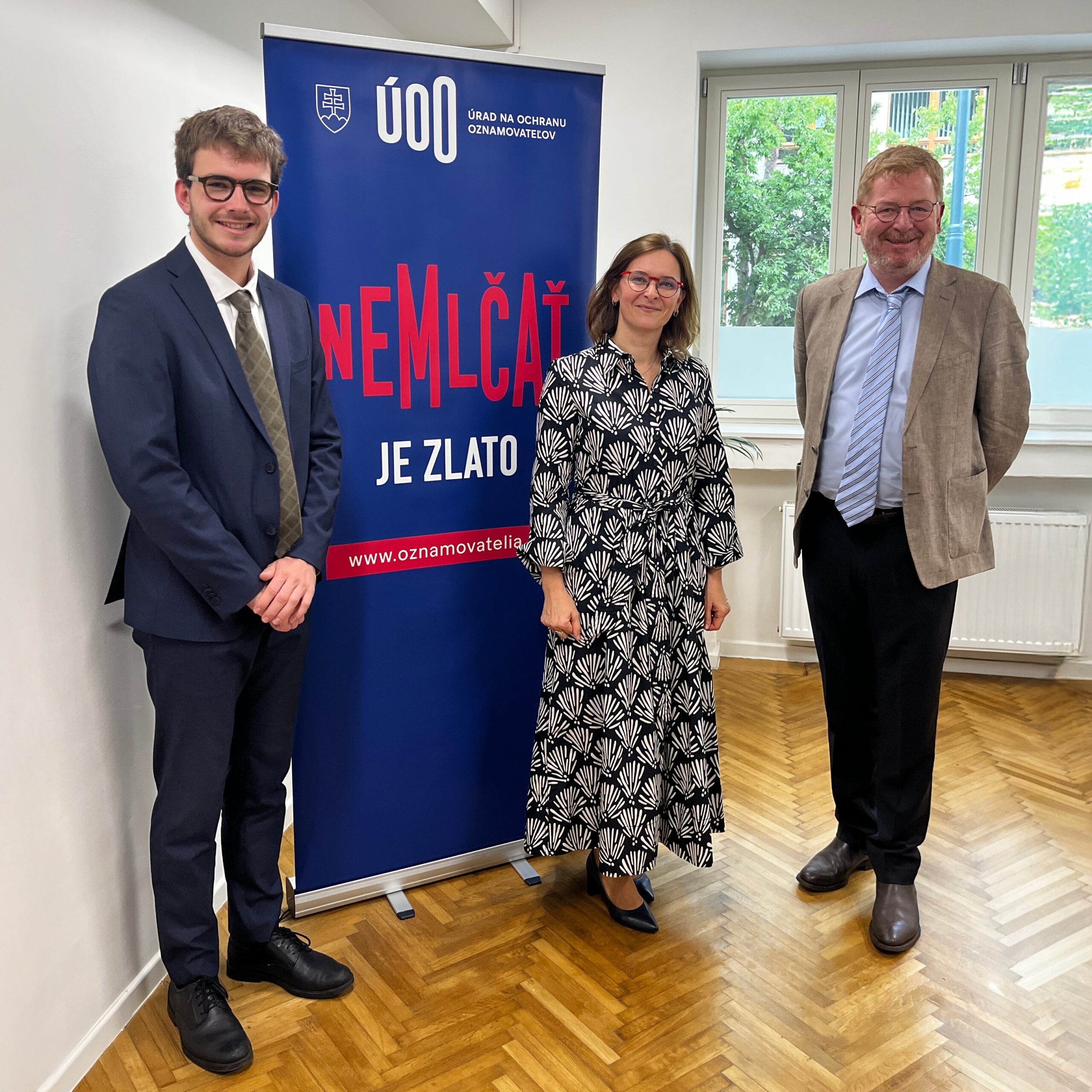 V našich priestoroch sme privítali zástupcov Francúzskeho veľvyslanectva na Slovensku. Spoločne sme sa ponorili do témy ochrany oznamovateľov a aktuálnych trendov v oblasti nahlasovania porušení zákona.
